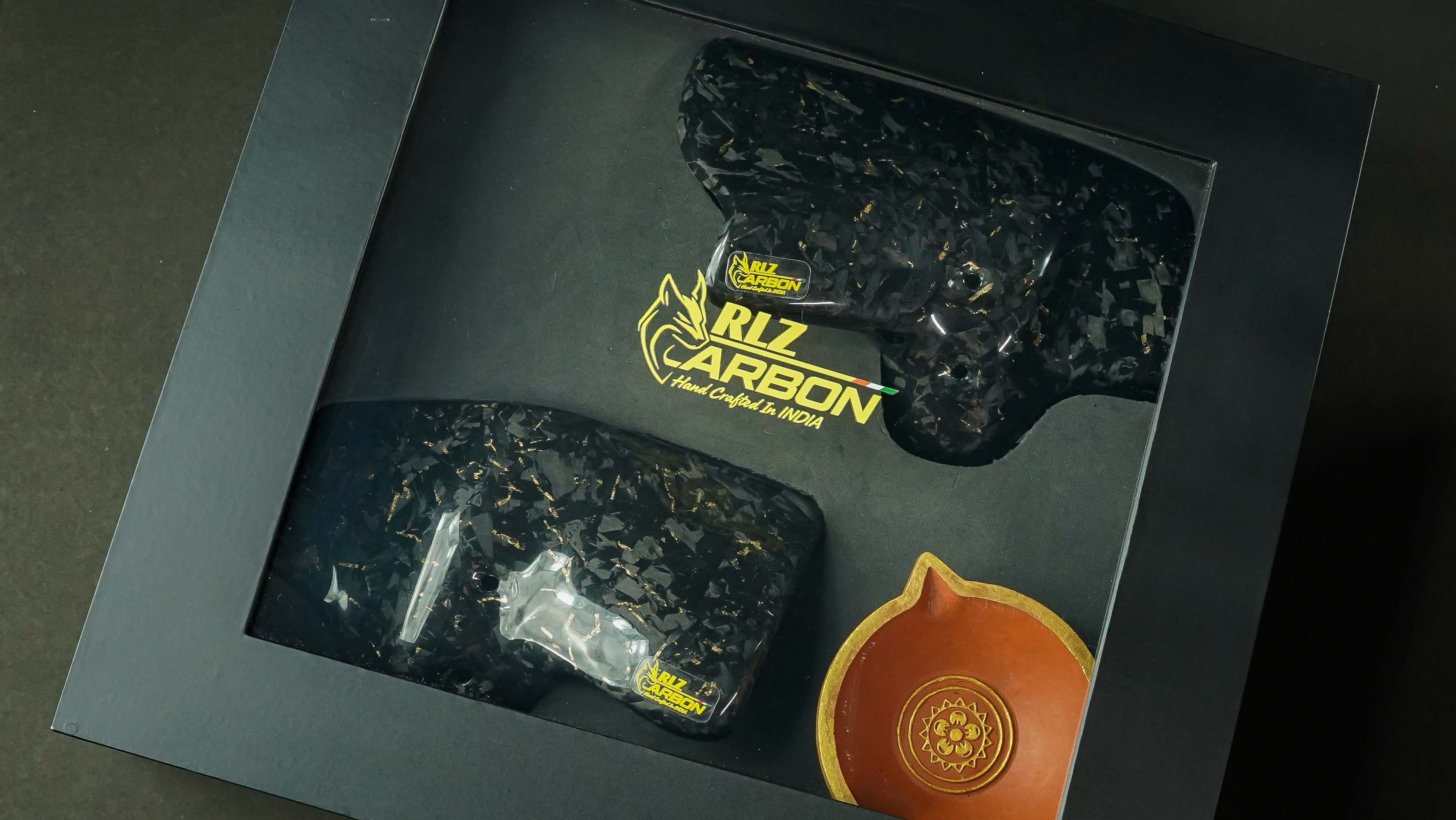RLZ Motorsports offers a Diwali-exclusive collector’s version of our most sought-after upgrade – the Forged Carbon Fiber Heat Shield with Golden Flakes for the Royal Enfield Interceptor 650 & Continental GT 650. Limited to just 25 hand crafted pieces, this release celebrates the festive season with an ideal mixture of heritage and high-performance layout.